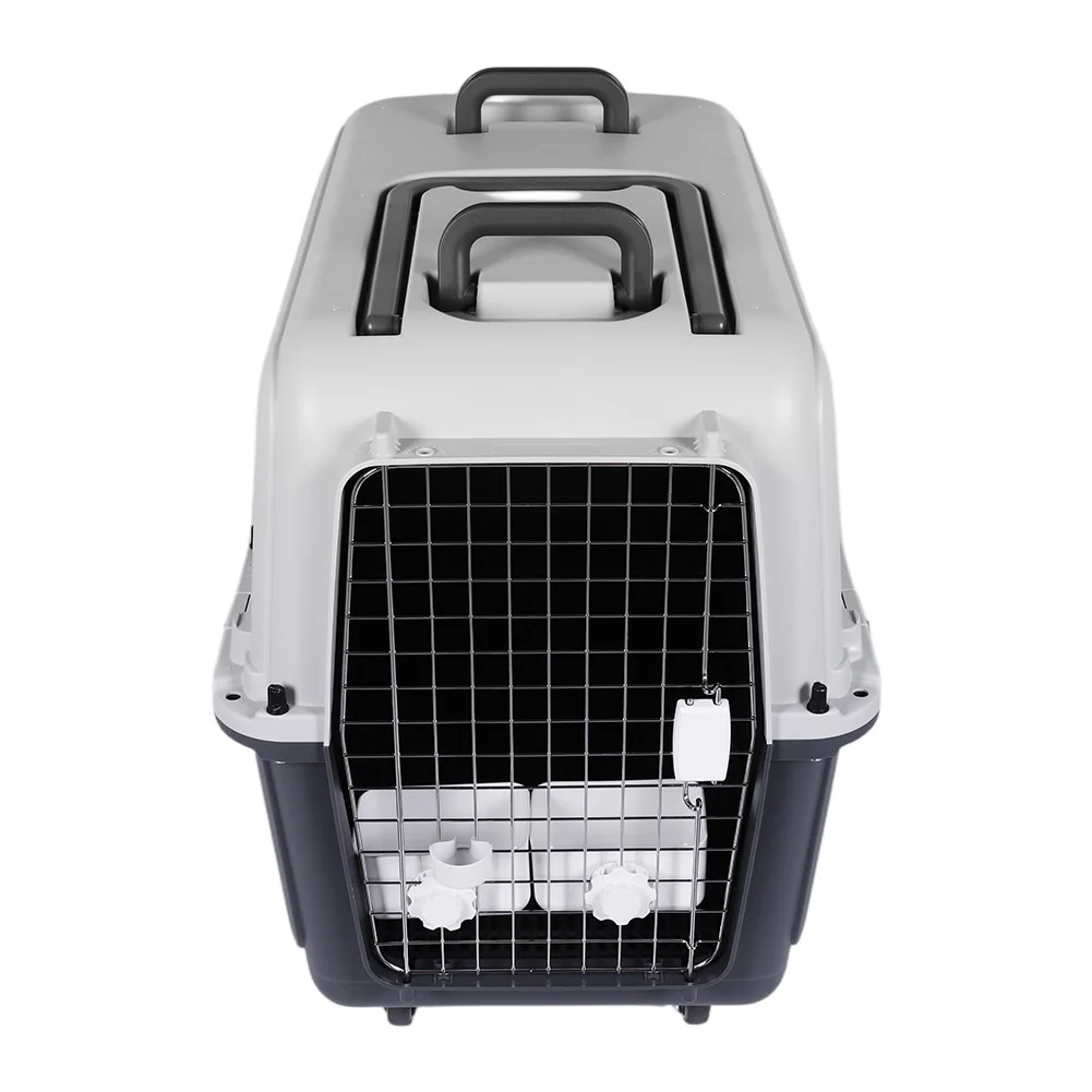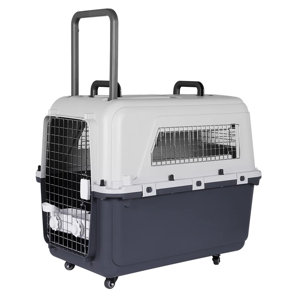 Make traveling with your furry friend easier and more comfortable with this rolling pet carrier stroller. Designed for pets up to 44 lbs, it provides a secure and spacious environment for both dogs and cats. The built-in wheels and telescopic handle allow for smooth, effortless movement through airports, streets, or parks. Its airline-approved design makes it ideal for hassle-free travel on most flights. Breathable mesh panels ensure proper ventilation while allowing your pet to enjoy the view. The sturdy frame offers durability and stability for everyday use. A soft, cozy interior keeps your pet comfortable during long journeys. Multiple entry points make it easy to place and remove your pet without stress. The compact, foldable design allows for convenient storage when not in use. Perfect for travel, vet visits, or daily outings, this pet carrier combines functionality with comfort.
