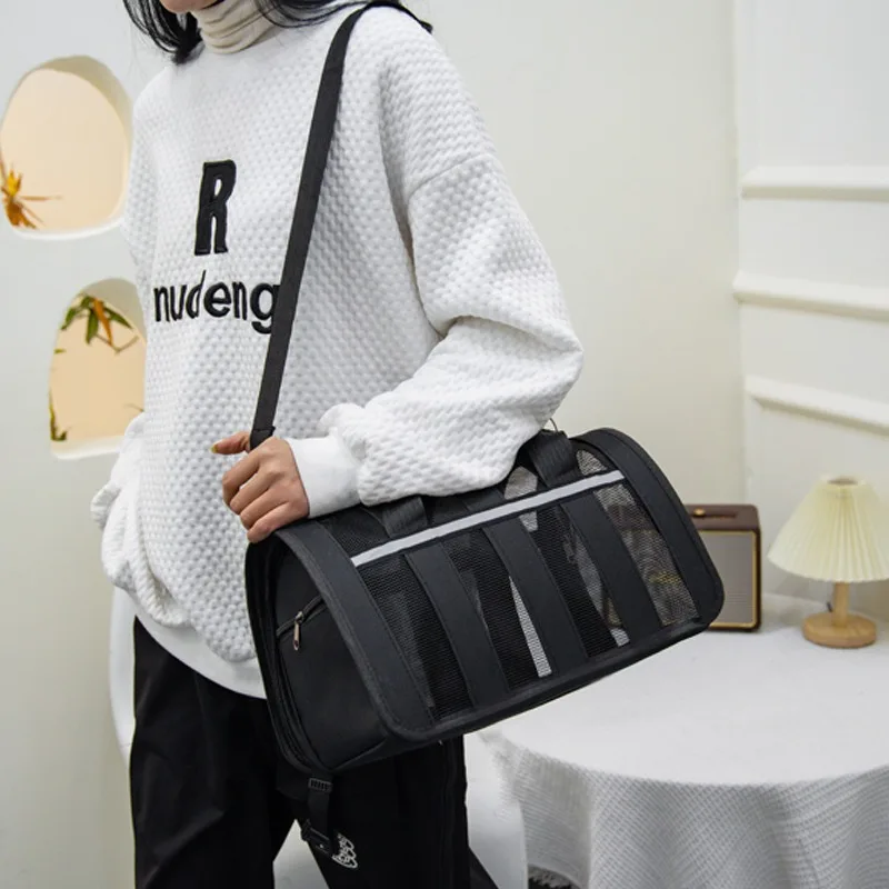 This breathable pet travel carrier is designed for comfortable outdoor adventures with your furry friend. Made with high-quality mesh panels, it allows maximum airflow to keep pets cool during summer outings. The lightweight and portable design makes it easy to carry wherever you go. Its collapsible structure ensures convenient storage when not in use. Perfect for small and medium-sized dogs as well as cats, it provides a secure and cozy space. The durable materials offer long-lasting use for daily travel needs. A sturdy zipper closure keeps your pet safely inside. The soft interior base adds extra comfort during long trips. Ideal for walks, road trips, or vet visits, this carrier makes traveling stress-free. Enjoy safe, stylish, and practical transport for your beloved pet.